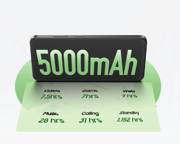 Смартфон оснащений батареєю 5000 мАг, що забезпечує тривалий час автономної роботи протягом дня навіть при активному використанні. Підтримується дротова зарядка 10 Вт через сучасний порт USB-C.